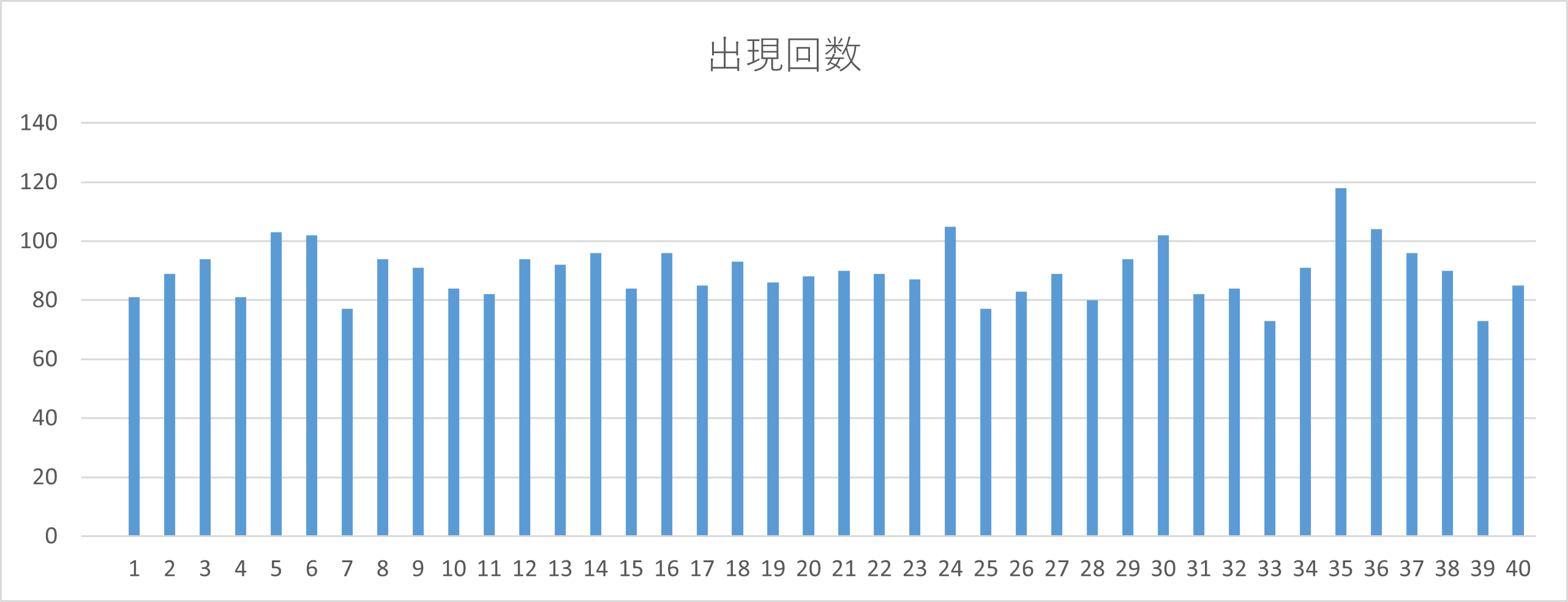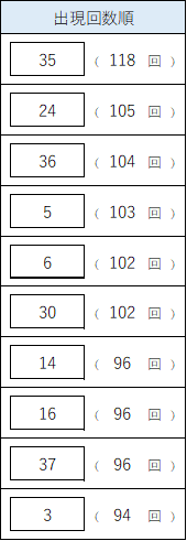 最も出現している数字は 【35】(118回) で、ダントツの1位。