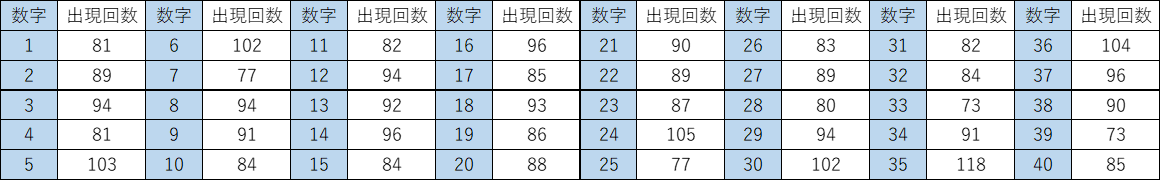 ▼ビンゴ5 全40数字のスキップ回数一覧表(タップで拡大できます)
