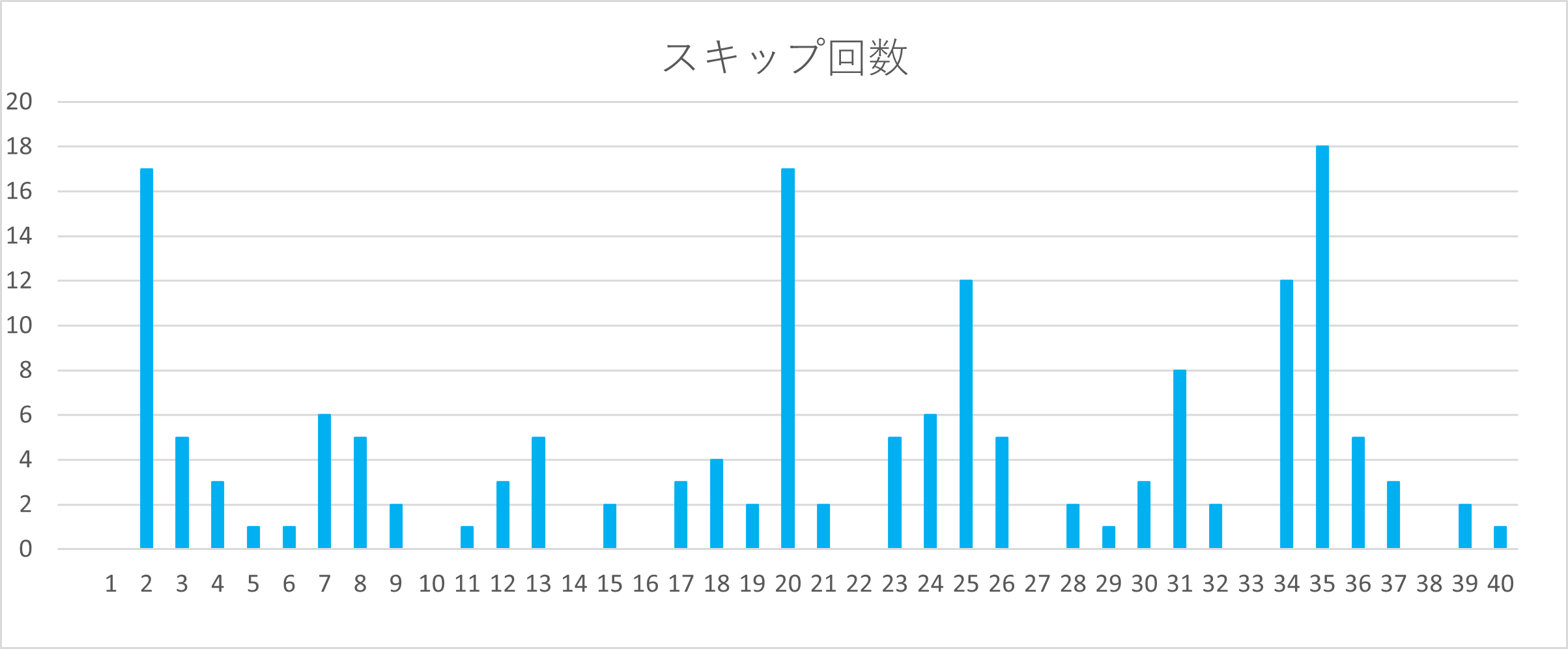 下のグラフでは、各数字がどれくらいスキップしているかが一目で分かるので、数字選びの参考にしてみてください。