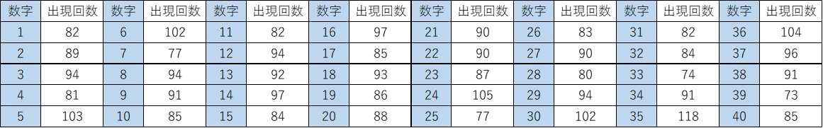 ▼ビンゴ5 全40数字のスキップ回数一覧表(タップで拡大できます)