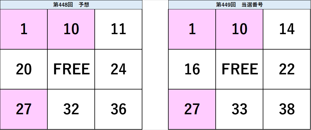 ▼ビンゴ5 第449回 予想と当選番号(タップで拡大できます)