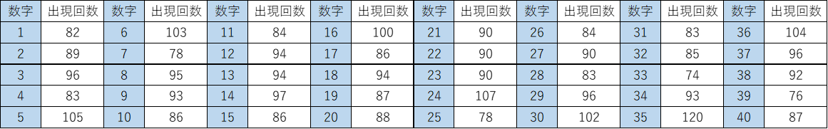 ▼ビンゴ5 全40数字のスキップ回数一覧表(タップで拡大できます)