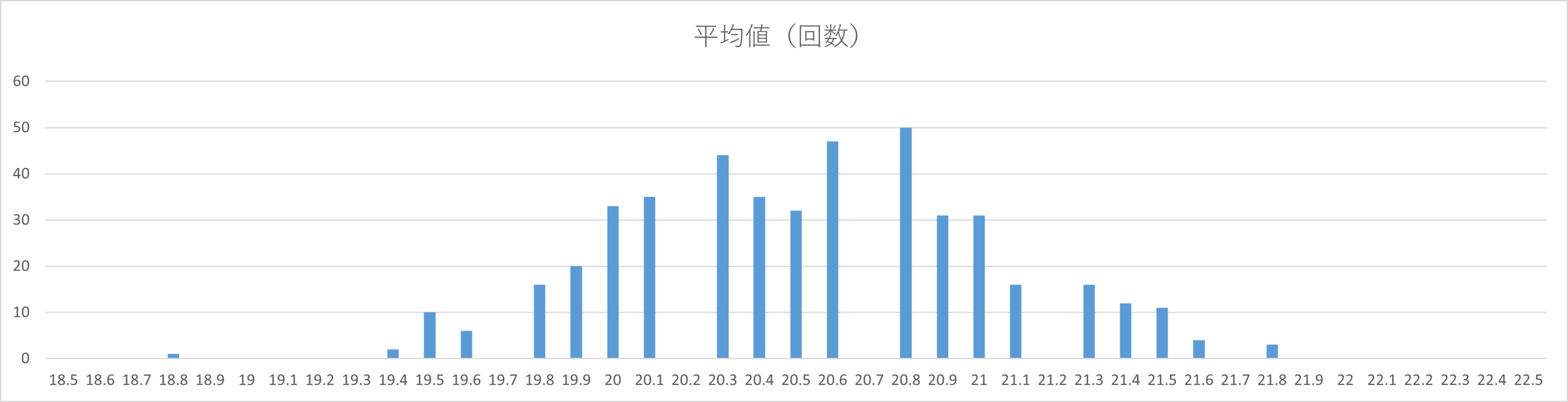 今回のデータは第1回〜第455回までの統計を使用しており、最も多く出ていた平均値は「20.8」です。