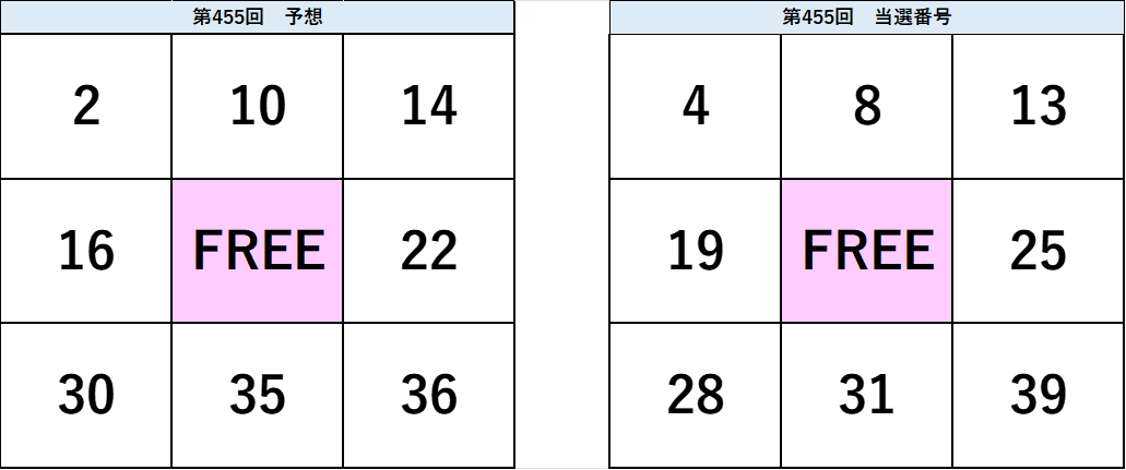 ▼ビンゴ5 第455回 予想と当選番号(タップで拡大できます)