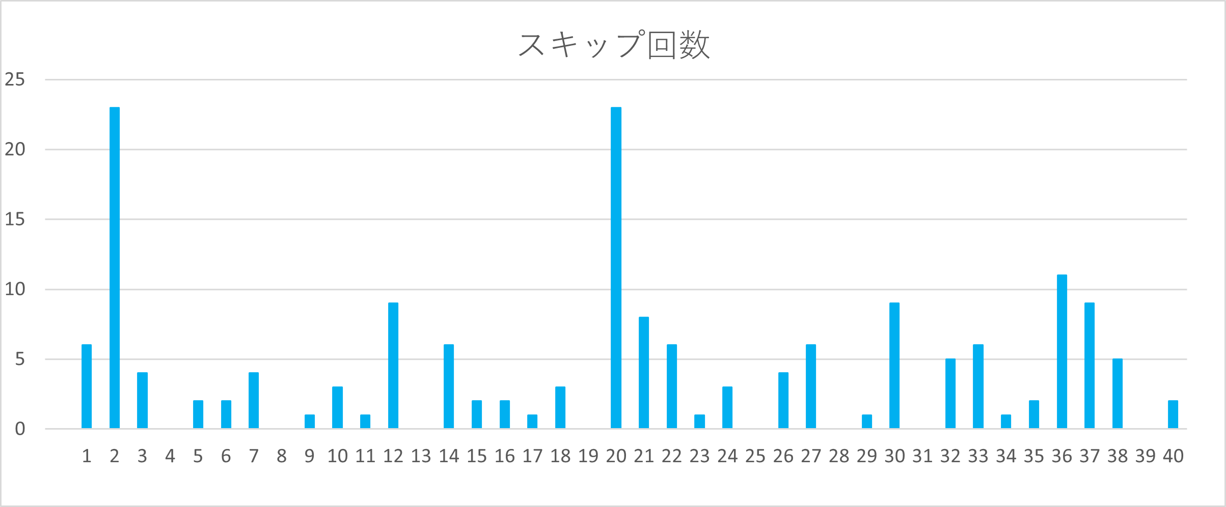 下のグラフでは、各数字がどれくらいスキップしているかが一目で分かるので、数字選びの参考にしてみてください。