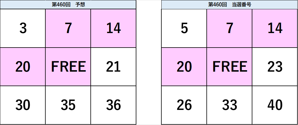 ▼ビンゴ5 第460回 予想と当選番号(タップで拡大できます)