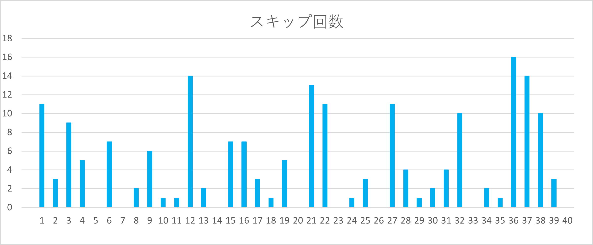 スキップ回数に変動はなかったです。「40」3連続が4回→5回になりました。