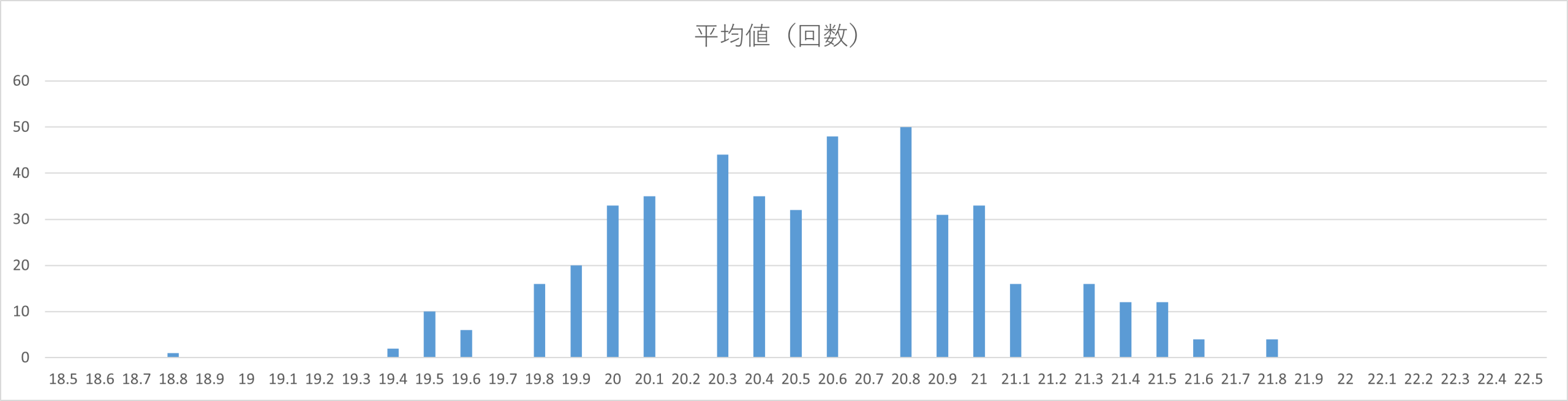 今回のデータは第1回〜第460回までの統計を使用しており、最も多く出ていた平均値は「20.8」です。