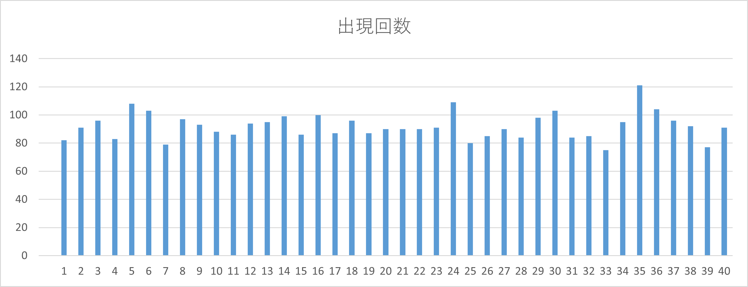 出現回数順の画像の下に 全40数字の出現回数一覧表 と 出現回数を視覚化した棒グラフ を掲載しています。