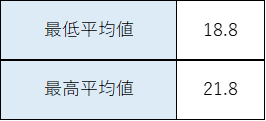 前回は、平均値21.0でした。過去↑(5回)↓(2回)です。