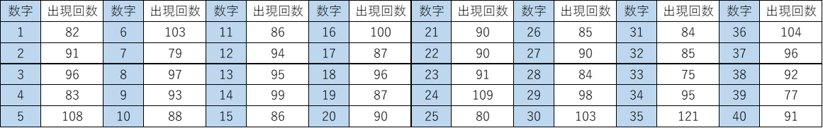 ▼ビンゴ5 全40数字のスキップ回数一覧表(タップで拡大できます)
