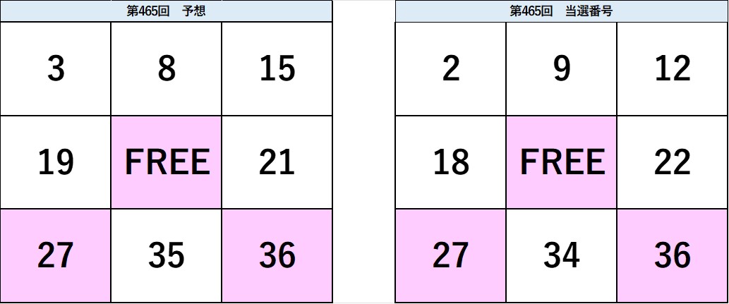 ▼ビンゴ5 第464回 予想と当選番号(タップで拡大できます)